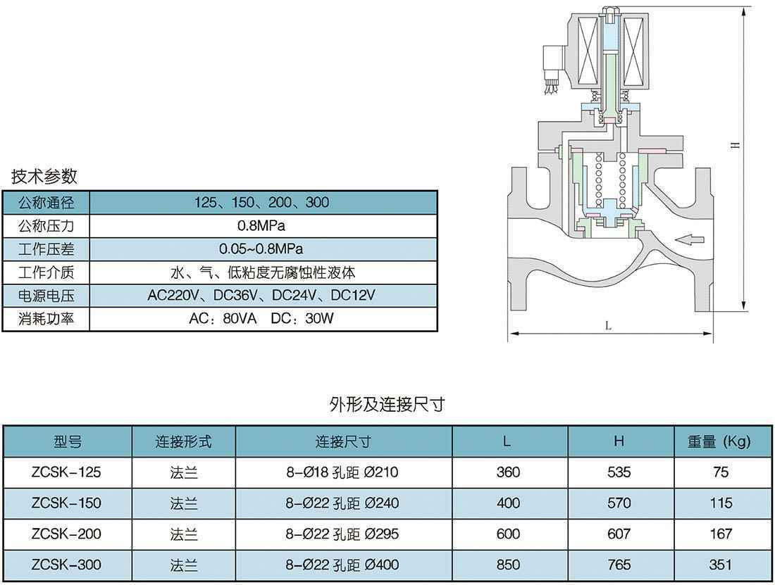 2/2大口径电磁阀 ZCSK-125、150、200、300型